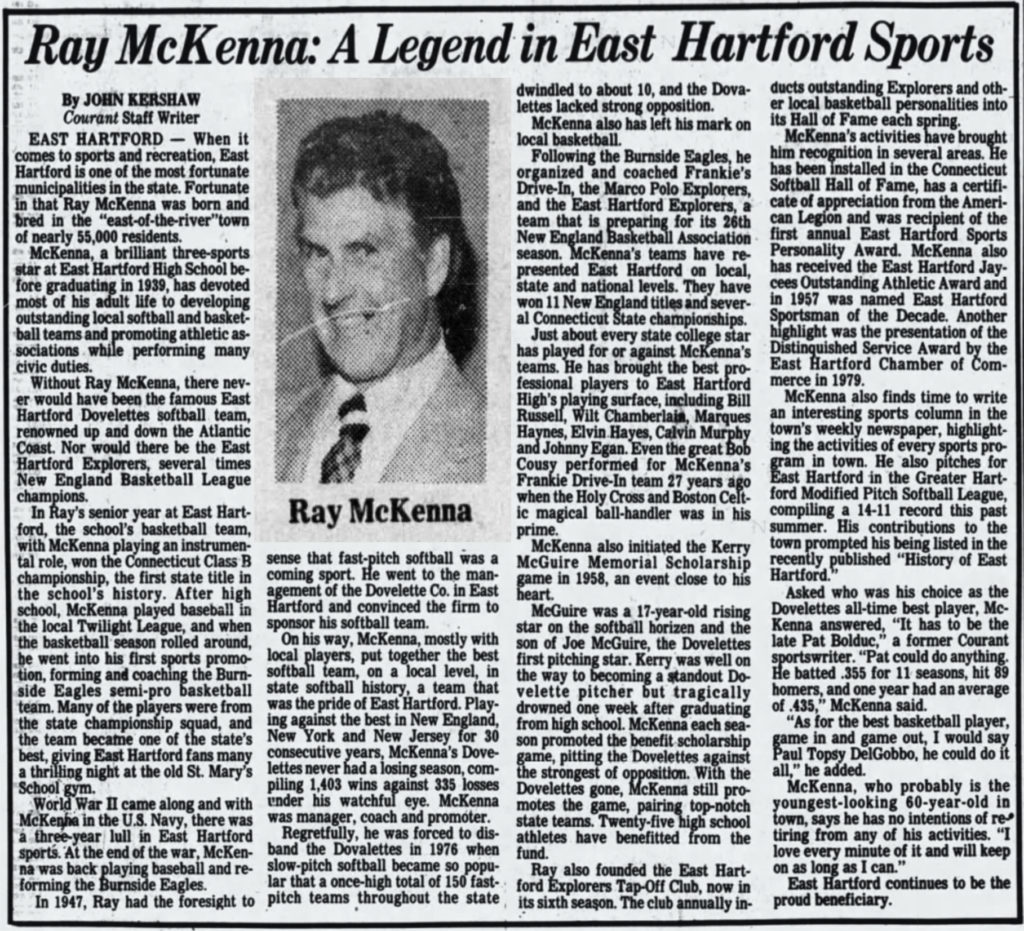 2. Ray McKenna Field at McAuliffe Park in East Hartford, Connecticut – dedicated in 1984:
