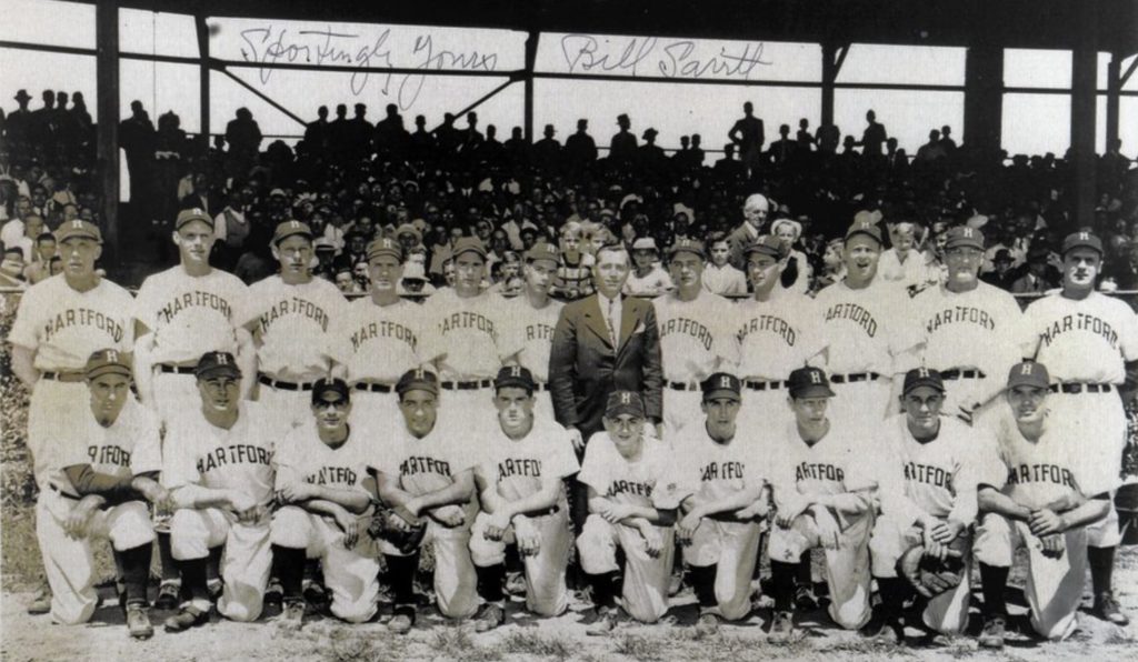 In Hartford and throughout the nation, the attack at Pearl Harbor on December 7, 1941, changed everything. American troop enlistment during World War II upended the careers of countless minor leaguers – though not all of them. The 1942 Hartford Bees regrouped under a new manager named Del Bissonette. By developing the next generation of stars, he became one of Hartford’s most memorable field generals.